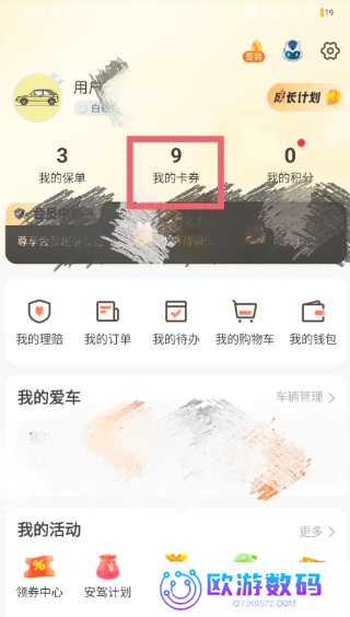 打开平安好车主APP,进入“我的”-“我的卡券”。